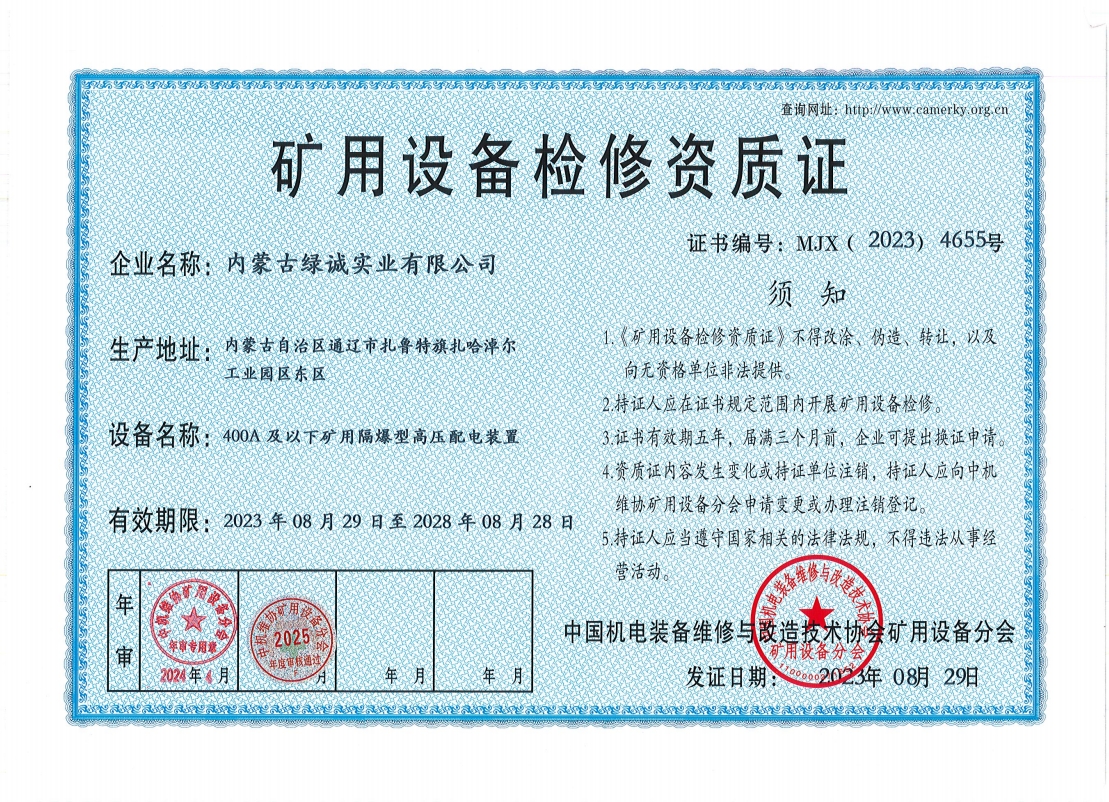 2018年我公司通過(guò)中國(guó)機(jī)電裝備維修與改造技術(shù)協(xié)會(huì)礦用設(shè)備分會(huì)審核并取得了9項(xiàng)礦用設(shè)備檢修資質(zhì)證書。公司本著“誠(chéng)信為本 質(zhì)量為先 全心全意為客戶 ”的服務(wù)理念,圓滿完成各個(gè)廠礦的機(jī)械維修及配套服務(wù),期待與您共同合作。